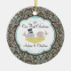Unsere einzigartige datierte Gewohnheit unsere erste Weihnachtsverzierung kennzeichnet eine niedliche Braut u. nisten die Bräutigamvogelpaare, die in Vögel sitzen, Set auf einem blauen u. braunen Blumenstrudeldamasthintergrund! Personifizieren Sie mit Ihren Informationen und Datum und Sie sind alles Set, zum zu gehen! Wunderbares datiertes Andenkengeschenk für ein erstes Weihnachten der Paare und ein großer Zusatz zu Ihnen Weihnachtsverzierungssammlung.
