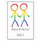 Diese Tischkarte zeichnet sich durch ein wunderschönes und elegantes Design aus, um eine kohärente und sinnvolle Touch zu Ihrem Hochzeitsempfang zu bringen. Die Grafik zeigt zwei Männer, in Form von eleganten Strichmännchen, die Hände halten. Die Figuren sind in einem wunderschönen Regenbogen gefärbt und symbolisieren Liebe und Diversity. Diese Karte ist eine wunderbare Möglichkeit, den Gästen zu helfen, ihren Platz zu finden und Ihre Liebe mit jedem Detail Ihres besonderen Tages zu feiern.