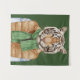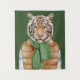 Dieses Ausrüstungsbeschreibungen, ein den Tigerwinter bereit, seins tragend, unten bekleiden Sie, grüner Strickschal und Weihnachtsstrickjacke.