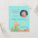 Niedliche und bunte Meerjungfraugeburtstags-Party Einladung, die ein kleines Meerjungfrau-Cartoonmädchen mit dem orange Haar hat, das auf einem Felsen sitzt. Sie macht den Partygästen den Fischen und der Krabbe eine freundliche sind nahe gelegen, Welle, die und die zum Party eingeladen werden. Girly laden für Kinder und groß für Meerjungfrau oder unter dem Meer, Underwater, Ozean ein und vereinigen themed Geburtstags-Partys. Personifizieren Sie leicht mit Ihren Informationen und Foto des Geburtstagsmädchens.