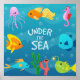 Poster mit einem kunstvollen Druck von Fischen unter dem Meer gezeigt. Passen Sie dieses Objekt an oder kaufen Sie, wie es ist.