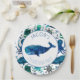 Unter dem Seewatercolor-Ozean-Wal-Muster-personalisierten Geburtstags-oder Baby-Duschen-Party-Papier-Teller. Themenorientiertes Muster des Seeozeans. Wal, Krake, Boot, Anker und versendet dreht herein Blues auf einem weißen Hintergrund. Koordinate mit anderen SeePartyversorgungen. Addieren Sie Namen und entweder Alter des Geburtstages oder eine andere Ereignisart wie BABYPARTY. www.SamAnnDesigns.com