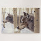 "Unter den Aspens" ist ein Acrylgemälde von zwei Wölfen im Winter Schnee zwischen den aspen Bäumen.