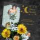 Unter den Sternen, Geburtstag, Quinceanera und süße 16 Veranstaltungen. Schwarzer Nachthimmel mit goldenem Mond und Sternen. Bildvorlage über Pixabay, lizenziert unter CC0 und muss durch Ihr eigenes Foto ersetzt werden
