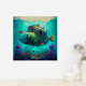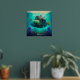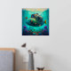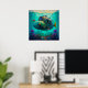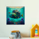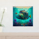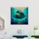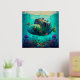 Dekorieren Sie Ihre Zuhause mit diesem Poster aus Gold oder Silber - ein Tief unter den Meerestieren und Meereskorallen mit einem SteampunkenU-Boot.