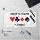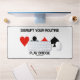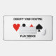 Zeigen Sie mit dieser Schreibtischmatte mit den vier Kartenkarten-Anzügen Ihr wry bridge / dupliziertes Bridge-Gefühl für den Spaß mit dem folgenden Bridge-Tipp: "Disrupt Your Routine Play Bridge". Sprichwort-Schreibtischmatte für jeden begeisterten Bridge-Spieler!