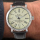Uhr, Vintage Männeruhr mit schwarzem Lederarmband