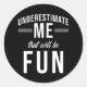 Unterschätzen Sie mich, dass es Spaß machen wird Runder Aufkleber