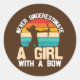 Unterschätzen Sie nie ein Mädchen mit einem Bow-Bo Runder Aufkleber