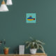 Eine niedliche Cartoon-Abbildung eines U-Bootes in blau und gelb mit grünem Hintergrund.