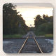 Dieser Untersetzer wäre großartig, wenn man alte Bahngleise mit einem Sonnenuntergang im Hintergrund Liebe.