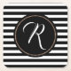 Stilvolle Untersetzer aus Zellstoffpappe in schwarz-weißem, horizontalem Streifen. Ein schwarzer Zierkreis, in der Mitte des Untersetzer, hat ein Monogramm aus weißen Singles. Personalisieren Sie den Brief, um Ihre Bedürfnisse zu Anzug. Ideal für jeden Gebrauch und macht eine nette Geschenkidee.