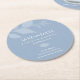 Verkünden Sie Ihre Verlobung mit diesem modernen Save the Date in einem einzigartigen Untersetzer-Format. Dieses Design ist minimalistisch in hellblau gehalten. Verwenden Sie die Vorlagenfelder, um Ihre Hochzeitsdetails auf einem staubblauen Hintergrund in Weiß zu bearbeiten. Ändern Sie die Farben der Blätter, Schriftart und Hintergrund, um Anzug Ihre Hochzeit Thema. Die passende Suite für staubblaue Hochzeitsbriefpapier finden Sie unter www.zazzle.com/dotellabelle