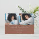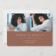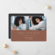 Die schlichte und moderne Ankündigung des Fotos von Abschluss umfasst zwei Fotos, die nebeneinander angeordnet sind, mit dem Namen, der Schule und dem Unterrichtsjahr des Absolventen in weißer Schrift auf einem Terrakotta-Hintergrund. Der Name und die Schule deines Absolventen erscheinen unten. Fügen Sie der Rückseite eine persönliche Nachricht und ein zusätzliches Foto hinzu.