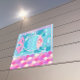 Eine lebendige und skurrile Illustration mit einem farbenfrohen abstrakten Fisch mit komplizierten Mustern, Set vor einem wasserbezogenen Hintergrund. Die Skalen der Fische sind auffallend detailliert mit geometrischen Mustern, und das Bild zeichnet sich durch eine spielerische und kreative Verwendung von Formen und Farben aus.