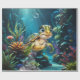 Unterwasserabenteuer mit der fröhlichen Schildkröte. Das Design besticht durch eine charmante Cartoon-Schildkröte, die elegant durch ein lebendiges Korallenriff schwimmt. Die Schildkröte hat eine hellgrüne Muschel mit spielerischen Motiven und eine hellgelbe Unterseite, die im Wasser glänzt. Große, ausdrucksstarke Augen verleihen ihm einen freundlichen und seltsamen Ausdruck. Das Korallenriff ist reich an farbenfrohen Korallen verschiedener Formen und Größen und strahlt in lebhaften Farben wie Rot, Orange, Rosa und lila aus. Zahlreiche Fischarten in fröhlichen Farben schwimmen zwischen den Korallen.
