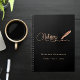 Ein eleganter schwarzer Hintergrund, der mit einem Federstift geschmückt ist. Personalisieren und fügen Sie einen Namen und Titel hinzu. Goldener Text: Notar