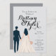 The Brittney Arched Double Sided Wedding Invitation is fully customizable. Part of the Until Forever Collection, this elegant invitation features a custom illustration graphic of a wedding couple styled to resemble you and your partner. You can choose the paper, the fonts, the colors, and the wording for your invitation. We will design for you a custom couple graphic, monogram, and a wedding icon(custom graphic) that you can use across your entire wedding stationery suite. This invitation features a timeless design and just enough frills in the font to be romantic and elegant. Without a lot of extra flowers or accents this invitation makes a statement that your event is going to be classic, formal, and sophisticated.