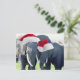 Süße Elefanten tragen Weihnachtsmannmützen und kauen auf Gras. Woll, Ihnen ein unvergessliches Weihnachtsfest zu wünschen!
