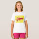 Ein urbanes künstlerisches Design im Bannerstil auf gelbem Hintergrund. Dieses Design sieht auf diesem Girls-T - Shirt wirklich effektiv aus