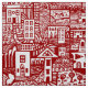 Ein originelles Stift- und Farbdesign aus halb-abstrakten Fantasiehäusern, Gebäude, Garten- und Landschaftselementen in einer surreal fragmentierten Anordnung, wie man sie in einem Traum erleben könnte. Ursprünglich mit einer feinen Pinsel und Designerfarbe gezeichnet, wurde das Design in eine Vektorgrafik umgewandelt und mit digitalen Malwerkzeugen weiter gemalt, aber das natürliche Medienlook des Originals erhalten. Die Mustergröße kann erhöht oder verringert werden. Die Hintergrundfarbe kann auch angepasst werden.