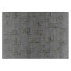 Zahlreiche überlappende Rechtecke verschiedener Größen sind in einem abstrakten Muster über einem grauen Hintergrund angeordnet. Manche Rechtecke scheinen eine solide Farbe von Oliven oder Schwarz zu sein, während andere nur Konturen sind, was ein Gefühl von Tiefe und Komplexität schafft.