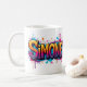 Knallig, kreativ, kompromisslos – dieses bunte Graffiti-Motiv mit dem festen Namen Simone bringt urbanen Streetstyle auf deine Lieblingsprodukte! Der kraftvolle 3D-Schriftzug in Gelb, Pink, Orange und Lila wird von wilden Farbspritzern in Blau und Magenta eingerahmt – perfekt für alle, die Farbe und Persönlichkeit lieben.