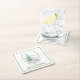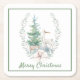 Weihnachts-Untersetzer, mit einem dünnen grünen Rand am Rand und wunderschönen Aquarellbildern eines Weißen Hirsches und Weihnachtsbaumes. Benutzerdefinierter grüner Text am unteren Rand kann personalisiert sein, zu lesen, was Sie gewollt haben.