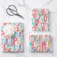 Dieses festliche Packpapier-Set enthält drei verschiedene handgeschriebene Designs mit den Sätzen "Weltfrieden", "Merry and Bright" und "Joy". Die Schrift ist strategisch strukturiert.