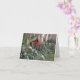 Individuell gestaltbare Urlaubskarte mit Kardinal in einem schneegrünen, immergrünen Baum. Bleib drinnen.
