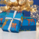 Hirsch , Schneeflocken, blaues Streifen Packpapier für Neujahr und Weihnachten besondere Verpackung.