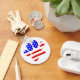 Niedlicher Hundekuchen im Stil eines Cartoon mit amerikanischer Fahne. Maßgeschneiderte Schlüsselketten für Hundefreunde. Alles, was gesehen wird, ist bedruckt, es wird keine eigentliche Prägung für die Herstellung dieses Produktes verwendet. Geschenkidee.