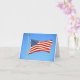 Eine helle und farbenfrohe US-Flagge, die gegen einen schönen blauen Himmel fliegt. Inspirierend und patriotisch! Bleib drinnen und geeignet für jeden Anlass.