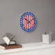 Dieses farbenfrohe amerikanische Design besticht durch rote und weiße Streifen, die von einem blauen Ring mit weißen Sternen umgeben sind. Emblem grafische Höflichkeit der kommerziellen Zustimmung mit freevectors.com