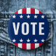 Pinback Button Abzeichen mit der Textabstimmung und US Flagge-Ränder.