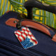 Die rote, weiße und blaue "US Flagge" US-Flagge. Bearbeiten Sie den Beispieltext auf der Rückseite dieses Gepäckanhängers, um ihn zu personalisieren.