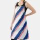 Sterne im blauen Hintergrund mit roten Streifen Vektordesign. Geometrische Musterkunst für trendige Bekleidungskultur.