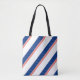 Sterne im blauen Hintergrund mit roten Streifen Vektordesign. Geometrische Musterkunst, die Ihre Einkaufstasche phantastischer macht. Probieren Sie es aus und teilen Sie Ihr Feedback.