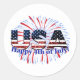 US-Glitzer mit Textflagge Feuerwerk am 4. Juli Runder Aufkleber