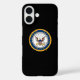 Ein Logo der United Staaten Navy. Das goldene kreisförmige Abzeichen besteht aus einem Adler mit einem roten, weißen und blauen Schild, der an einem Anker befestigt ist.