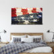 Überlagert über diese überzeugende Szene ist eine mutige Darstellung der Flagge der Vereinigten Staaten, stolz entfesselt vor dem Hintergrund. Seine lebhaften Farben Rot, Weiß und Blau dienen als Leuchtfeuer der Hoffnung und Einheit und repräsentieren die Ideale der Freiheit, Gerechtigkeit und Unabhängigkeit, die die Amerikaner durch die Jahre geführt haben. Mit der US-Verfassung: Präambel.