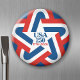 Feiern Sie Amerikas 250-jähriges Jubiläum mit einem "throwback button"-Design mit einem roten, weißen und blauen Stern aus dem Jahr 1976. Dieses in Amerika entworfene Design bietet ein einfaches Design mit patriotischen Farben und macht es zu einem Muss für die Feierlichkeiten 2026.