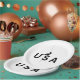 Amerikanischer Bergsteiger, der die Buchstaben der USA benutzt, um durch Abseilen einen Stein abzusteigen. Schwarzes Bild auf weißem Hintergrund