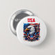 Das US Button Button wird in einem patriotischen USA Flag und Adlerprint gezeigt. Passen Sie dieses Button an oder kaufen Sie, wie es ist. Lizenziertes Bild