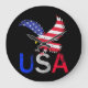 Ein amerikanischer Adler in US Flagge, der über "USA" in Rot, Weiß und Blau fliegt. Ein einzigartiges amerikanisches Geschenk für den 4. Juli oder andere besondere Anlass, um Ihren Patriotismus auszudrücken.