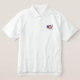 Dieses patriotische Shirt ist mit Amerika bestickt, in den Farben der Fahne.