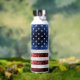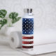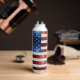 US-Flagge rot blauen Glitzern Glitzer Insulated Water Flasche. Funkelnd Amerika 4. Juli weiße glühende Sterne und funkelnde Streifen. Lebhafte US-Fahne in den Glitzern Rot, Weiß und Blau des Imitats. Wir verwenden Foto von Glitzern Glitzer!
