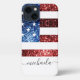 Personalisieren Sie Imitate funkelnd mädchenhafte iPhone Gehäuse mit Ihrem Namen. USA Flagge in rot und blau Imitat Glitzern Glitzer. Wir benutzen Foto von Glitzern Glitzer.