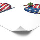 Eine Abbildung eines Apfels mit dem Fahnenmuster der Vereinigten Staaten in voller Farbe. Auf der links Seite des Apfels stehen weiße Sterne auf blauem Hintergrund, auf der rechten Seite sind rote und weiße Streifen zu sehen. Der Apfel selbst sollte eine glatte, kühne Kontur haben, ohne Schatten oder Gradienten, und Stamm und Blatt sollten ein natürliches Grün sein. Die Farben sollten lebendig und klar sein, mit einem einfachen und klaren Design