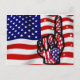 USA-amerikanische Flagge mit einer Fahne in der ersten Hand.